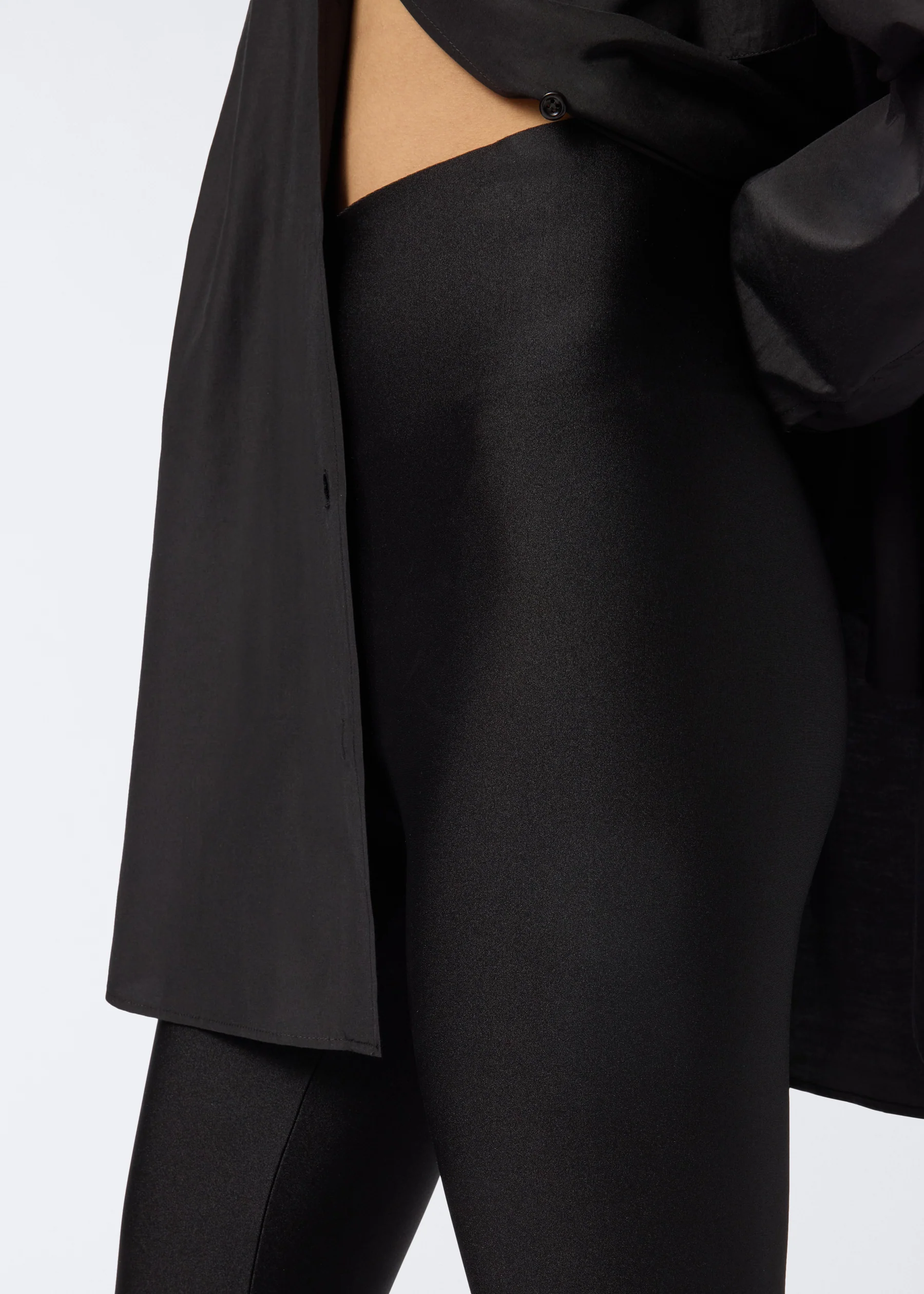 Let your style speak volumes and captivate the world with every move in the dynamic and unforgettable Holly 80s capri leggings. A daring fusion of nostalgia and contemporary style, these leggings boast a sleek black lycra finish that shimmers with a subtle sheen, bringing a touch of disco glamour to every step you take. With a high waist that cinches and accentuates, these leggings redefine the boundaries of fashion, offering a daring silhouette that stops just below the knees. For a festival-ready aesthetic, pair these leggings with a long t-shirt that comes below the hips, some vibrant sneakers, and a bum bag worn around the waist.