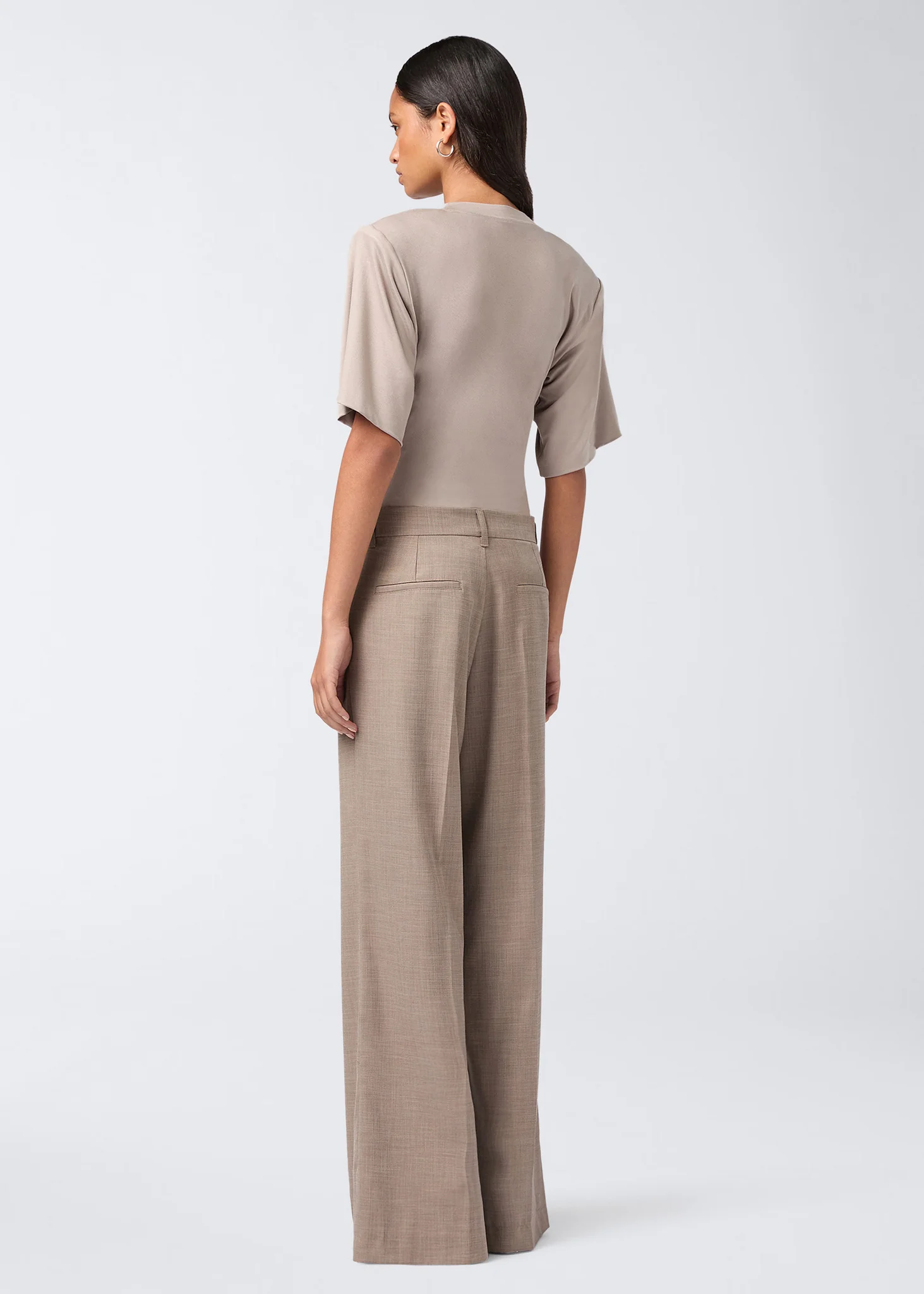 The Lennox bodysuit is cut from greige daily jersey. Soft and comfortable, this bodysuit takes its shape from a classic T-shirt silhouette with its short sleeves, round neck, and regular fit. Adding dimension to the silhouette are the padded shoulders and ruching at the side.